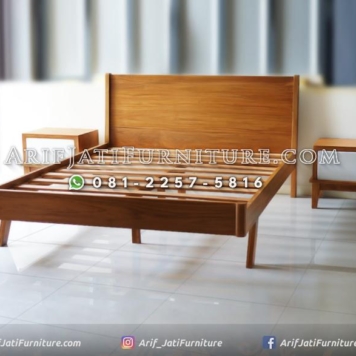Model dipan minimalis retro kayu jati memang terkesan simple dan sederhana dengan ciri khasnya akan adanya kaki yang miring. Kali ini customer kami menginginkan model yang cukup simple dengan bentuk kepala dipan tanpa variasi hiasan dan ukiran sehingga berbentuk polos saja dan ketinggian bagian dipan ekor yang tidak melebihi kasur. Customer juga memesan sekaligus dengan nakas dengan warna natural coklat kombinasi cat duco putih untuk menyerasikan warna ruang kamar tidur.