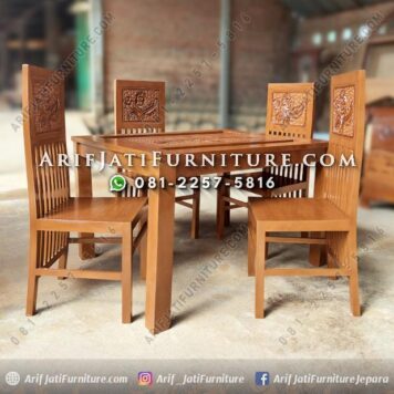 *Harga Hubungi CSSet Kursi Makan Koin Kombinasi Ukir Set Kursi Makan Koin Kombinasi Ukir motif air kali ini cukup jarang ada di pasaran mebel Jepara karena ada perubahan motif berupa tambahan ukiran. Set kursi makan minimalis koin diproduksi dari bahan baku kayu jati pilihan yang cukup awet serta kokoh dalam jangka panjang. Kursi makan koin tersebut akan… selengkapnya