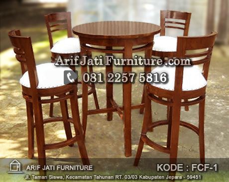 Kursi Meja Bar Kayu Jati desain minimalis simple kini dapat anda order di Arif Jati Furniture kami . Sesuai dengan kemajuan bisnis kini mulai bertambah tempat cafe maupun bar . Mebel Jepara kami hadir menyajikan desain dan produk furniture interior bagi anda yang memiliki usaha bar maupun cafe baru . Bahan baku produk mebel Jepara kami dipilih dari jenis kayu jati . Namun kayu yang kami gunakan dipilih berdasarkan umur kayu yang siap diproduksi . Untuk itu kursi bar kayu jati tersebut dapat tetap tahan lama dan kokoh .
