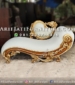 Model Kursi Sofa Malas Ukir Kayu Jati Jepara memiliki desain yang didominasi dengan ukiran unik yang bahkan bentuk kaki sofa tersebut dibuat dengan ukiran juga. Ukiran hiasan pada sofa diberi warna emas sehingga menghasilkan paduan warna antara natural coklat sebagaia warna standar dan warna emas pada hiasannya. Sedangkan warna kain jok yang dipilih yaitu warna putih netral sehingga pas dan cocok antara paduan ke-tiganya. Customer kami sebelumnya juga memesan sofa stool ukir yang cantik dengan warna finishing dan kain jok serupa.