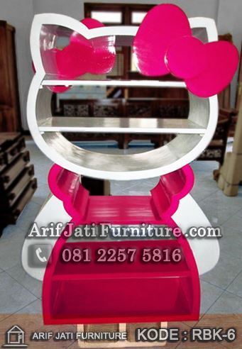 RpRak Buku Bentuk Hello Kitty Rak Buku Bentuk Hello Kitty terbaru dengan bentuk rupa full badan hello kitty untuk kamar tidur anak perempuan. Rak buku anak model terbaru ini berbahan baku yang dapat dipilih antara kayu mahoni atau MDF. Kedua jenis kayu tersebut dapat menghasilkan warna lebih maksimal serta lebih murah. Selain rak buku Hello… selengkapnya