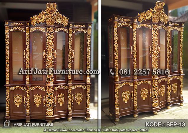 *Harga Hubungi CSLemari Hias Mewah Ukir Eropa Klasik Lemari Hias Mewah Ukir Eropa Klasik warna emas model terbaru ini dapat menjadi salah satu pilihan anda untuk melengkapi furniture ruang tamu rumah mewah anda. Lemari hias biasanya disebut dengan bufet pajangan oleh masyarakat Jepara sendiri dan juga memiliki sebutan lain seperti lemari display oleh masyarakat perkotaan dengan funsgi… selengkapnya