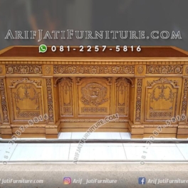 Meja Kantor Mewah Ukir Jati Jepara Meja Kantor Mewah Ukir Jati Jepara model Presiden kali ini adalah hasil karya terbaik Arif Jati Furniture kami dengan custom desain yang tidak ada di pasaran mebel Jepara. Meja kantor ini dapat anda gunakan sebagai meja kantor Direktur yang paling mewah diantara yang lainnya dengan hiasan ukirannya yang mencolok…. selengkapnya