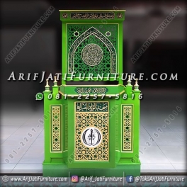 Mimbar Masjid Kayu Jati Minimalis Mimbar Masjid Kayu Jati Minimalis mewah cat duco warna hijau model terbaru dengan desain sederhana ini merupakan inovasi terbaru dari mebel Jepara kami. Mimbar masjid minimalis cat duco hijau sangat jarang ada yang menyamai dan hanya diproduksi jika ada permintaan pesanan saja. Oleh karena itu produk Mimbar Masjid Minimalis Mewah… selengkapnya