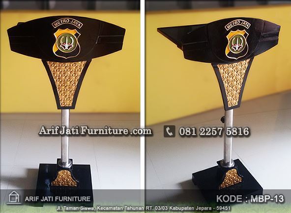 Mimbar Pidato Hidrolik Kayu Jati Mimbar Pidato Hidrolik Kayu Jati merupakan produk custom yang saat ini masih jarang dan bahkan tidak dapat anda temukan di pasaran mebel Jepara. Podium pidato hidrolik ini biasanya diperuntukkan bagi instansi, organisasi, badan usaha maupun pemerintahan yang disertai dengan logo tertentu. Bahan baku pembuatan mimbar hidrolik ini diproduksi dari kayu… selengkapnya