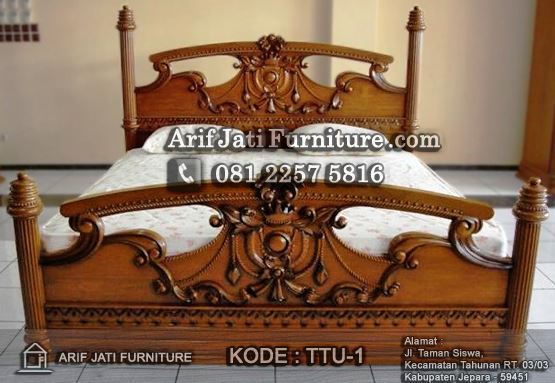 Tempat Tidur Mahkota Kayu Jati Ukiran Jepara